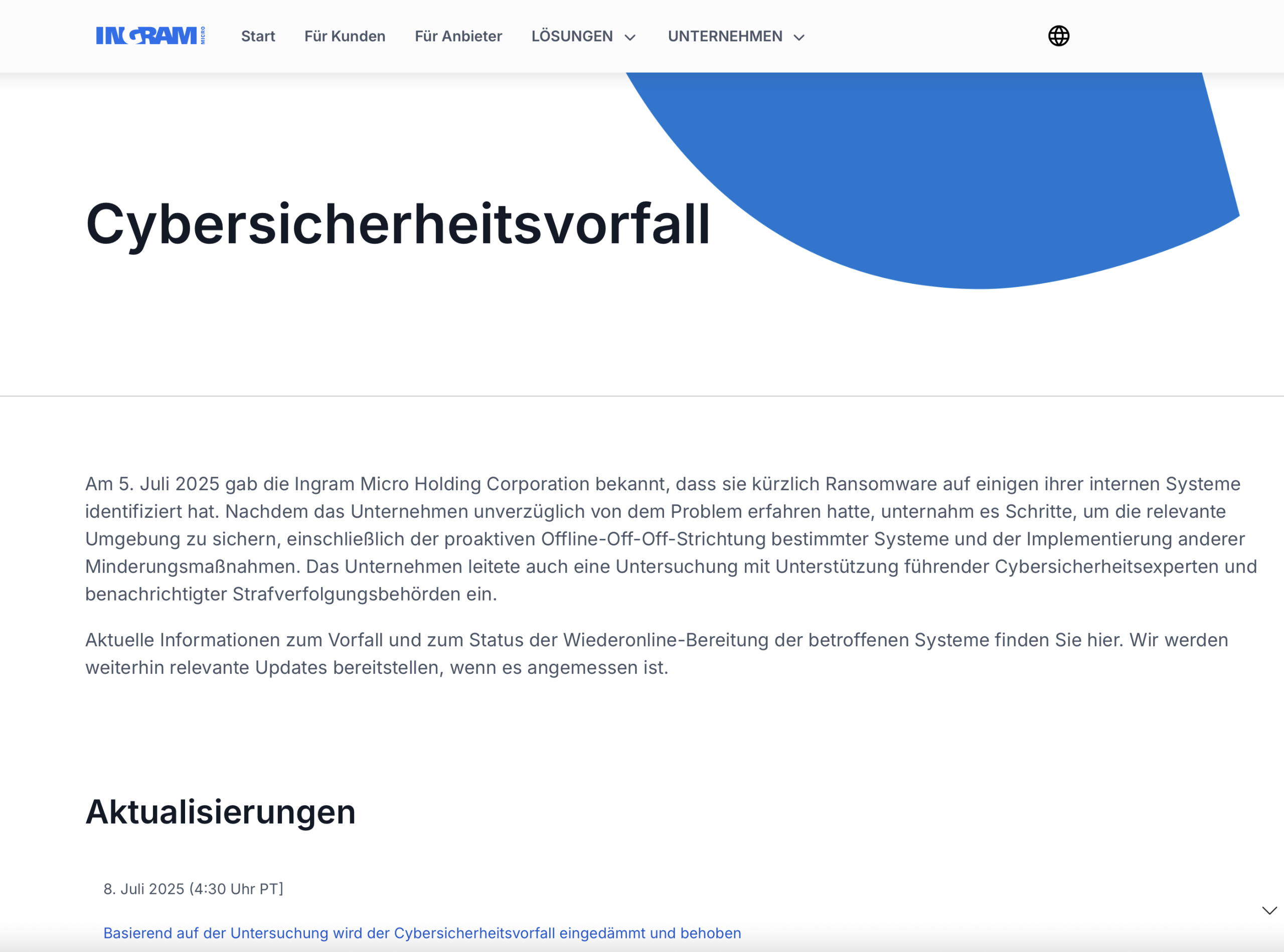 Ingram Micro ist nach Cybervorfall eingeschränkt wieder erreichbar